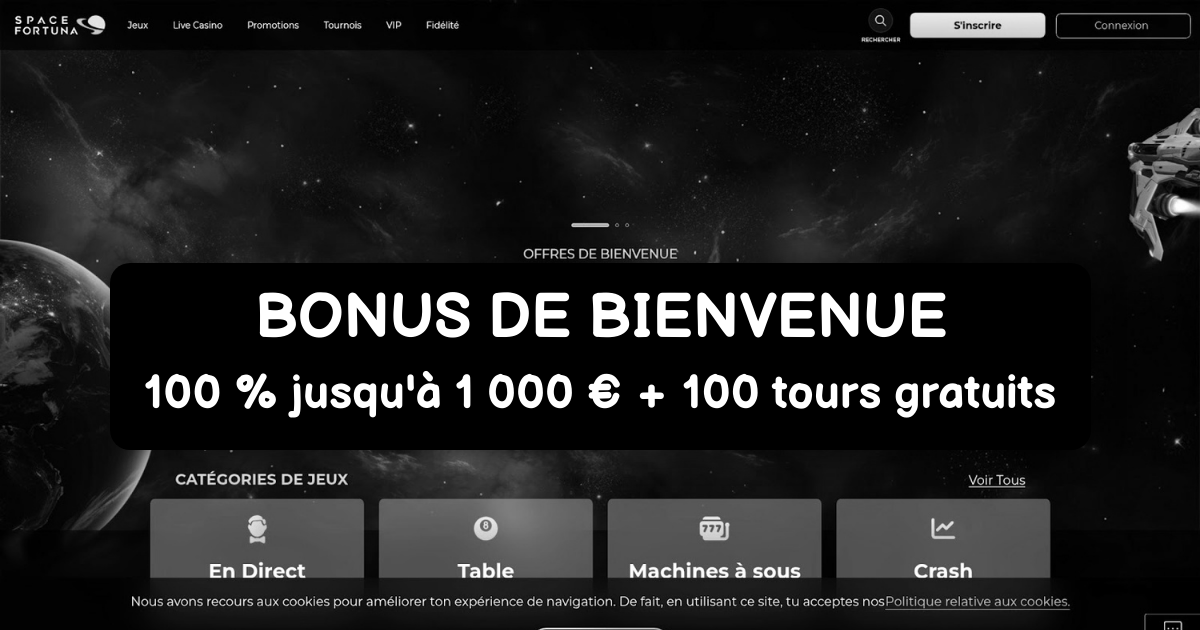 Le bonus de bienvenue de Space Fortuna atteint des montants particulièrement attractifs, pouvant aller jusqu'à 1 000 € selon les offres en cours. Cette générosité s'accompagne généralement de 100 à 200 free spins, permettant aux nouveaux joueurs d'explorer les machines à sous les plus populaires sans risquer leur propre capital.